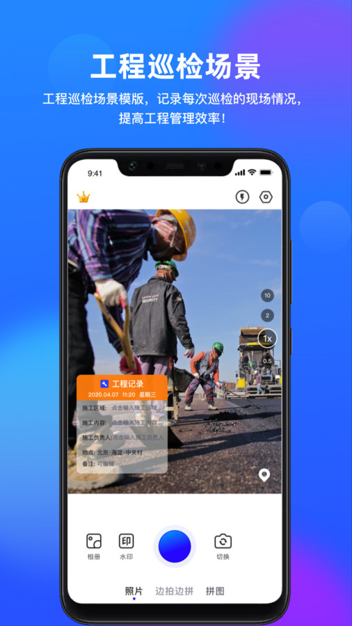 1.按照实际的情况,你可以随时在拍摄图片上添加位置等各类水印;