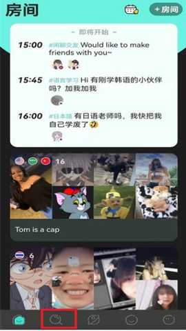 1、首先登录 yeetalk 国际版,进入主界面后点击首页下方红框所示区域,跳转至语伴推荐页面;