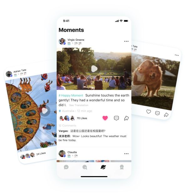 3、在动态广场分享本国语言、文化与日常生活,同时浏览全球母语者发布的真实内容,实现深度跨文化交流;