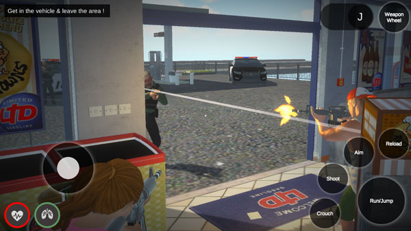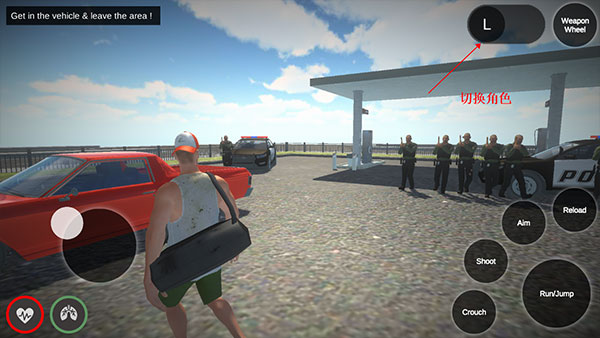 1、打开圣安地列斯后,进入开始任务,右下角是跳跃或者奔跑、拾取、下蹲、射击等操作按钮。