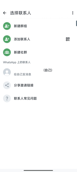 1、打开WhatsApp软件之后,点击右上角的三个竖点,进入联系人界面。