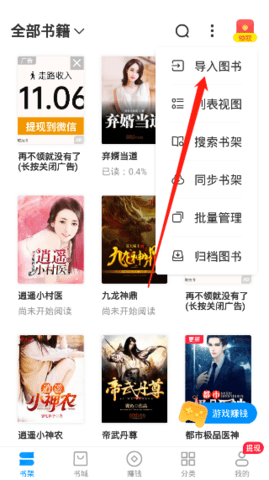 3、在这里我们可以找到“导入图书”的功能并点击。