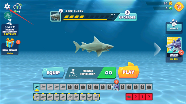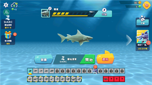 作为一款冒险生存游戏,玩家就要在保证鲨鱼生命的前提下,尽可能进行更多的冒险,获取更多的金币,提升自身能力