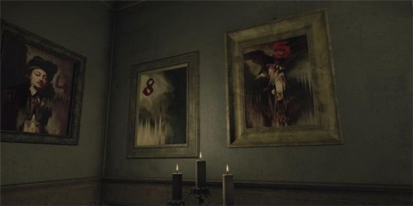 在蜡烛上方的三幅尺寸不大的有油画上会从左往右显示出“4、8、5”的字样(注意,不同存档,此密码不尽相同)。