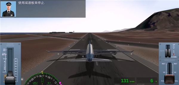 接下来是着陆模式,这是这个游戏的重点,我们需要先降低自己飞机飞行的高度,然后寻找到我们需要降落的跑到,接下来就是在空中调整自己飞机的姿态,使得自己的飞行角度和跑道的角度是一样的,然后慢慢的减速降落,落到跑道上时放下轮子进行慢慢减速直到停止。