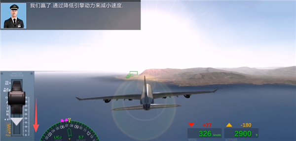 同时也要注意天气的变化,这一点对飞机的操控有很大的影响。在飞机完全起飞之后我们就可以点击屏幕右边的圆形的按钮,出现一个精确调整的仪器,来调整飞行的方向和速度。