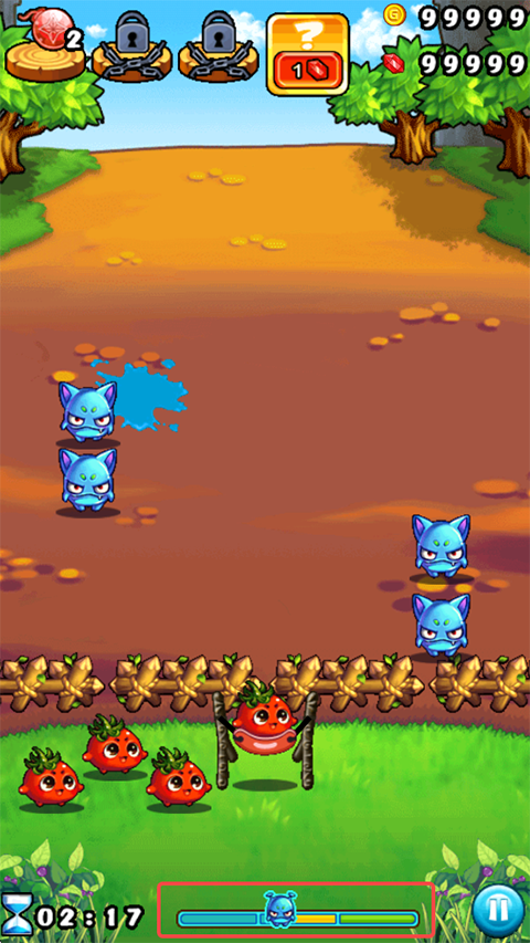 5、在游戏下方有关卡进度,怪物头像走到最左边即可通关。