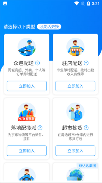1、首先打开应用,用手机号进行验证码注册,然后选择一种接单类型进行注册,后面可以随便更换的