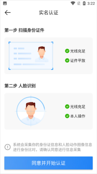 3、仔细阅读认证步骤,阅读完后就点击【同意并开始认证】