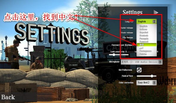 4、现在游戏界面已经变成中文啦!除了语言设置,这里还能调整音量、麦克风等声音相关选项。