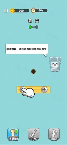 点击关卡之中的螺丝,将它们取出放置在其他的位置,让固定的木板掉落,
