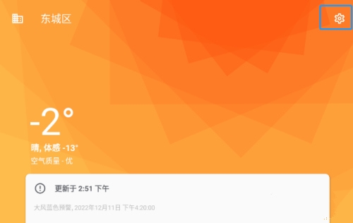 1、首先打开几何天气app,如下图,选择界面右上角的设置图标,点击打开。