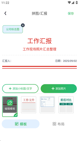 3、支持拼图汇报,让大家可以方便的将工作现场的照片整理到一起汇报工作;