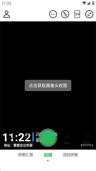 2、进入app开启相机和定位权限之后就可以拍照获得水印照片;