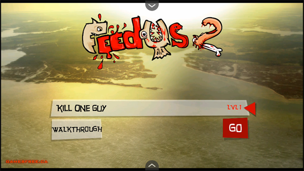 1、打开游戏,我们能够进入到游戏主界面下,在这游戏左边,我们能够看到一系列选项,从上到下依次,为升级、设置、作弊码、游戏攻略、更多游戏,我们只需点击右边的GO按钮便可以开始游戏了。