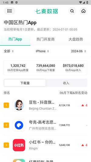 七麦数据这是一款能够帮助我们查询各种软件在全网下载量、热度、销量等等信息数据并提供专业分析的工具软件,在该软件当中实时更新和变化趋势的查询。无论是安卓还是苹果平台,都可以轻松查看所有数据都经过精确分析,确保你能够获得最准确的信息。