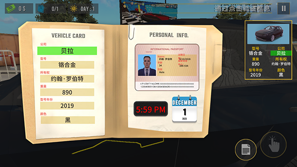 3、你可以在游戏中查看驾照和文件,玩家可以允许或拒绝通过边界。