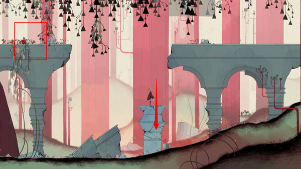 15、先去右边拿刚刚看到的第四个“备忘录”。砸破碎石下来,再利用藏在花瓶里的花瓣上去。