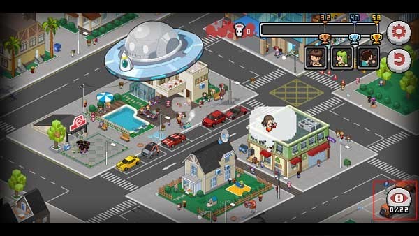 4、下面就是发现并“点击”场景中的“危险物件”。比如楼顶的花盆,当人出现在花盆掉落的区域,就可以再次点击花盆将人砸死。