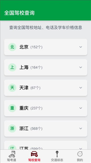 2、点击驾校查询的板块,能够快速查找到离你最近的驾校地址。
