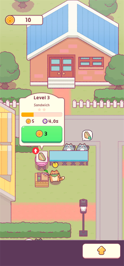 6、点击下方黄色的箭头,这里可以在收获一只猫猫,可以帮助你制作三明治;