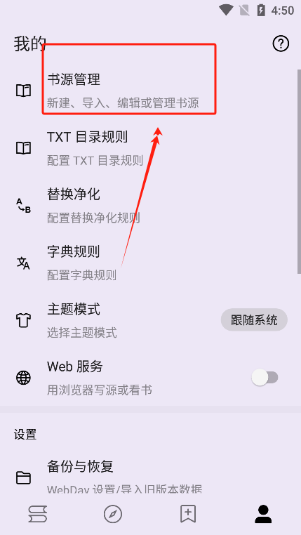 2、然后点击“书源管理”。