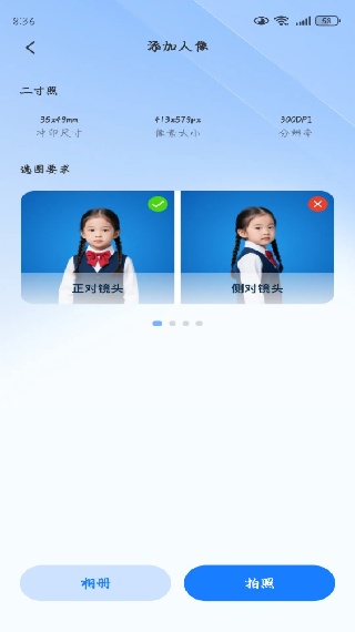3、选择自己需要的证件照尺寸,可以选择拍照也可以从相册中选择;