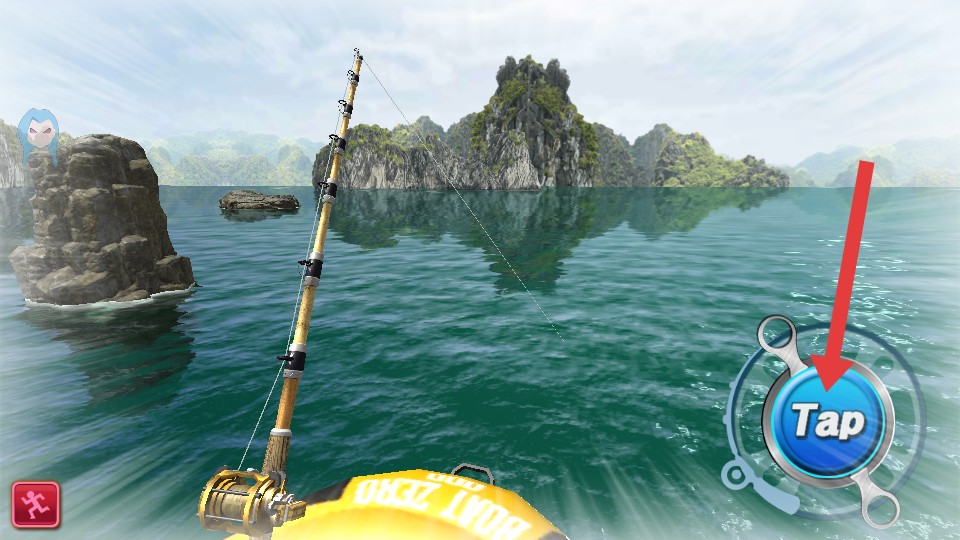 2、抛竿后,当出现可互动提示时,点击【Tap】按钮,开始尝试钓到鱼。