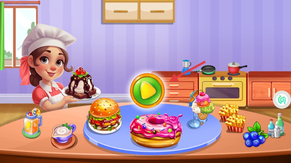 1、点击界面中间的绿色开始按钮,进入美食制作游戏,开启烹饪之旅。