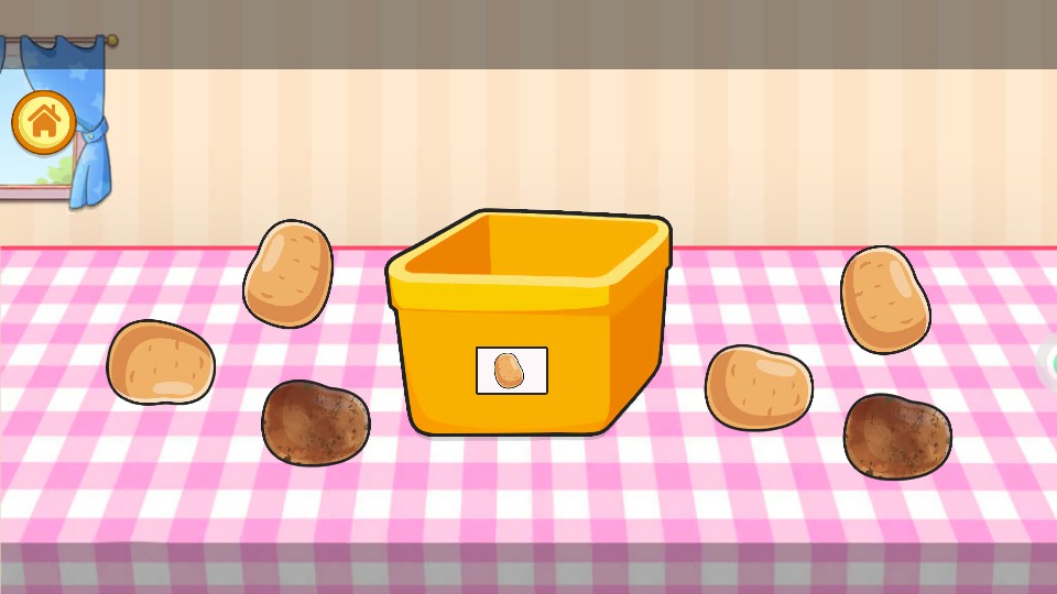 3、根据黄色箱子上的提示,挑选符合要求的土豆,将其放入箱子中,完成食材挑选。