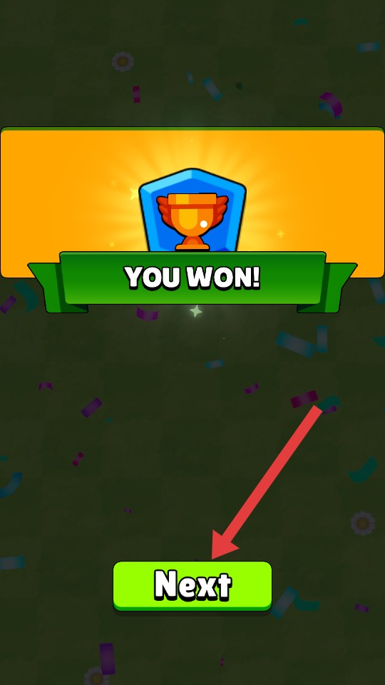4、成功通关后,看到【YOU-WON!】提示后,点击【Next】按钮进入下一关。