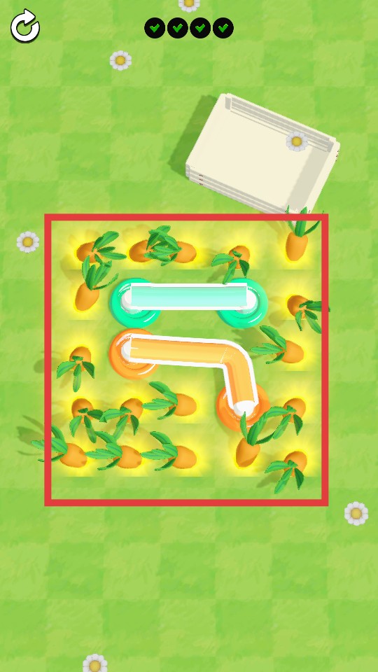 3、当水管连接完成且上方标识全为【✔✔✔✔】时会进行浇灌植物,点击方框内【胡萝卜】将其拾取完即可通关。