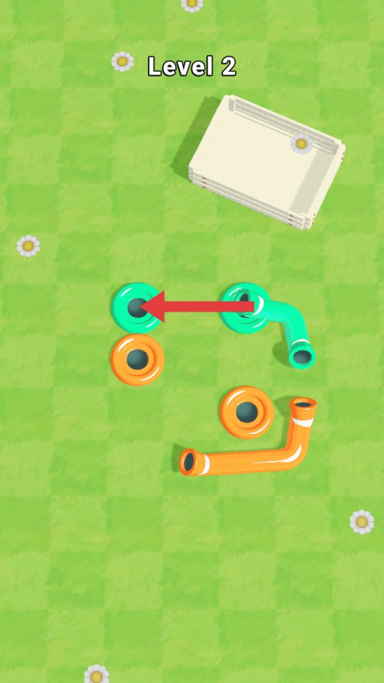 1、进入游戏后,根据【红箭头】指示,向左移动【绿色水管】部件进行连接。