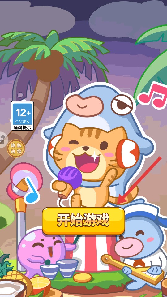 1、点击界面中间的【开始游戏】按钮,进入卡通风格游戏界面,开启休闲冒险。