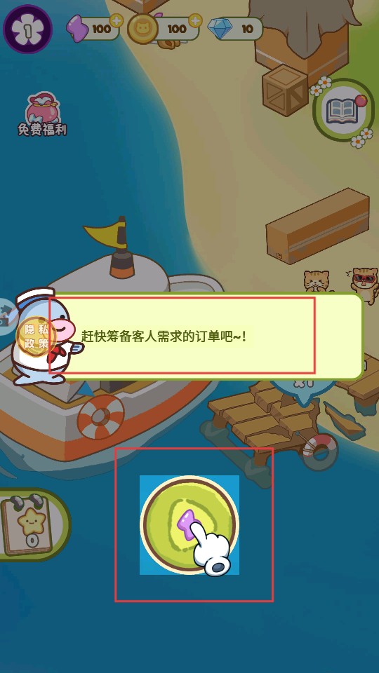 2、根据提示点击画面中间的【粉色-图标】,开始筹备客人需求的订单。