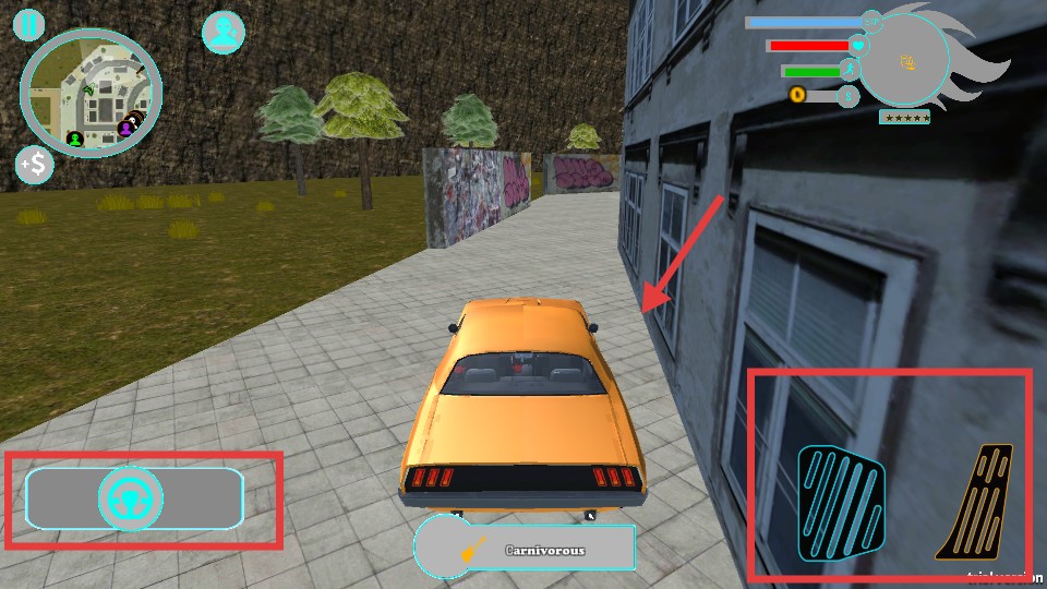 2、通过下方遥感控制火柴人驾驶前方车辆。