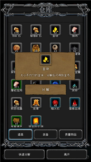 探险中会遇到矿点,通关探索可以获取金块等回到庇护所分解可以获取金币。