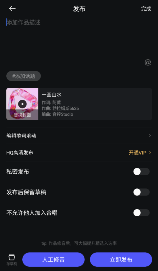 4、当以上三步都完成后,就可以发布自己的作品了