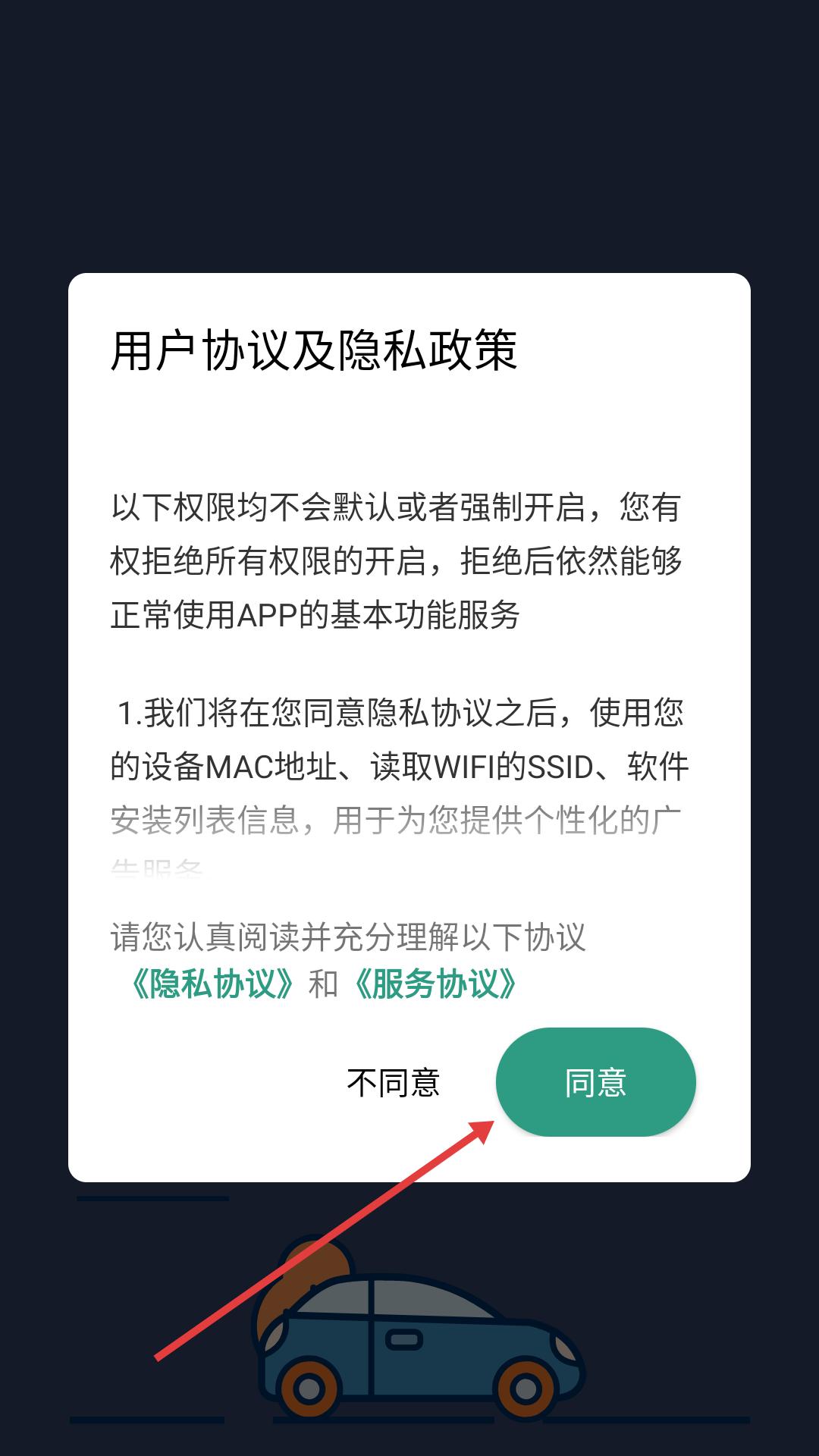 1、下载安装完成后进入,需在用户协议和隐私政策界面点击同意,接受相关条款后才能进入应用。