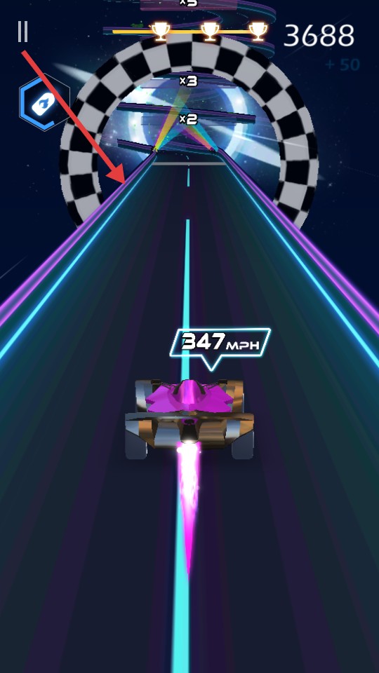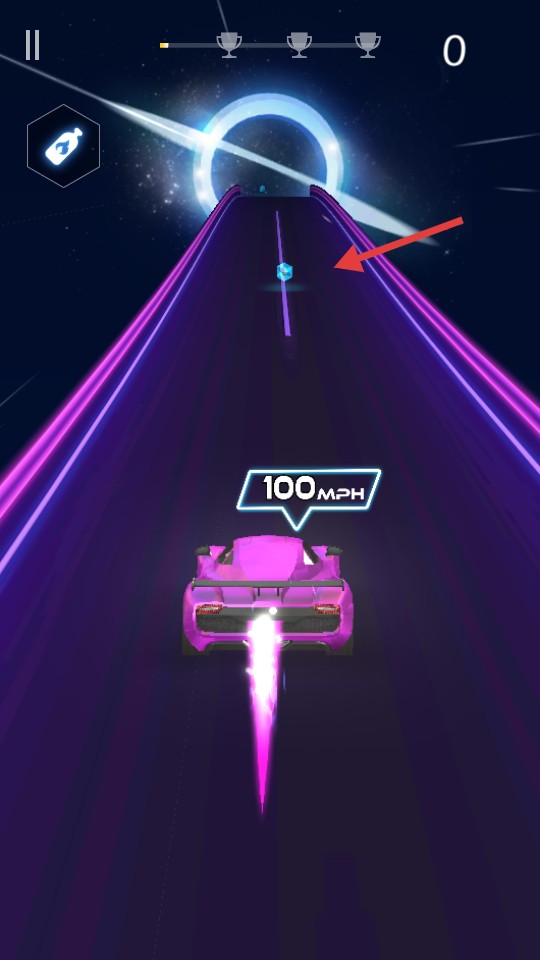 2、驾驶赛车时,收集赛道上的蓝色晶体,保持100MPH及以上速度前进。