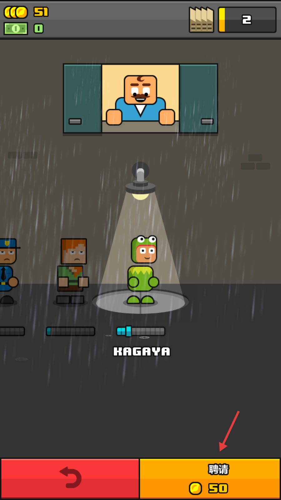 2. 员工招聘流程:点击界面底部图标前的方框。出现加号后,点击确认金币数量符合要求。然后你就可以招聘新员工了。后续招募所需的金币将会增加。