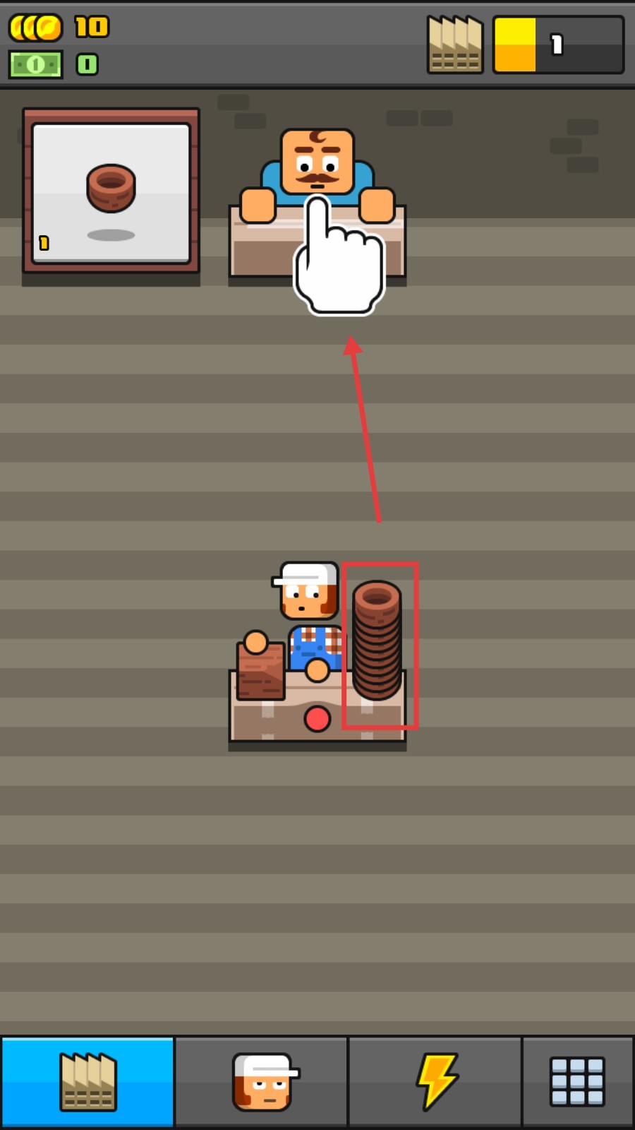 4.员工将加快他们的工作。当道具出现时,点击使用它们。然后点击boss的头像收集金币
