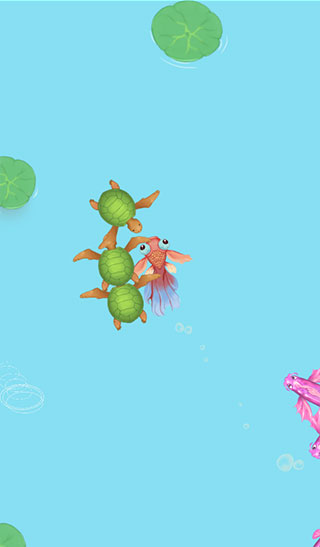 3. 可爱的视觉体验:荷塘场景以清新的卡通风格打造。这些水生动物可爱又生动