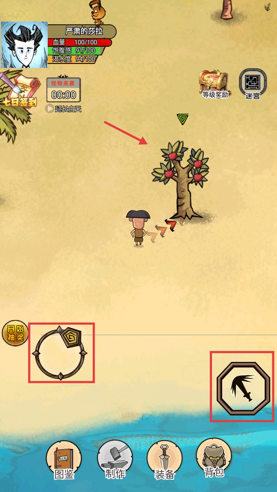 1、我们可操控角色靠近果树,借助界面功能采集苹果,为生存奠基。