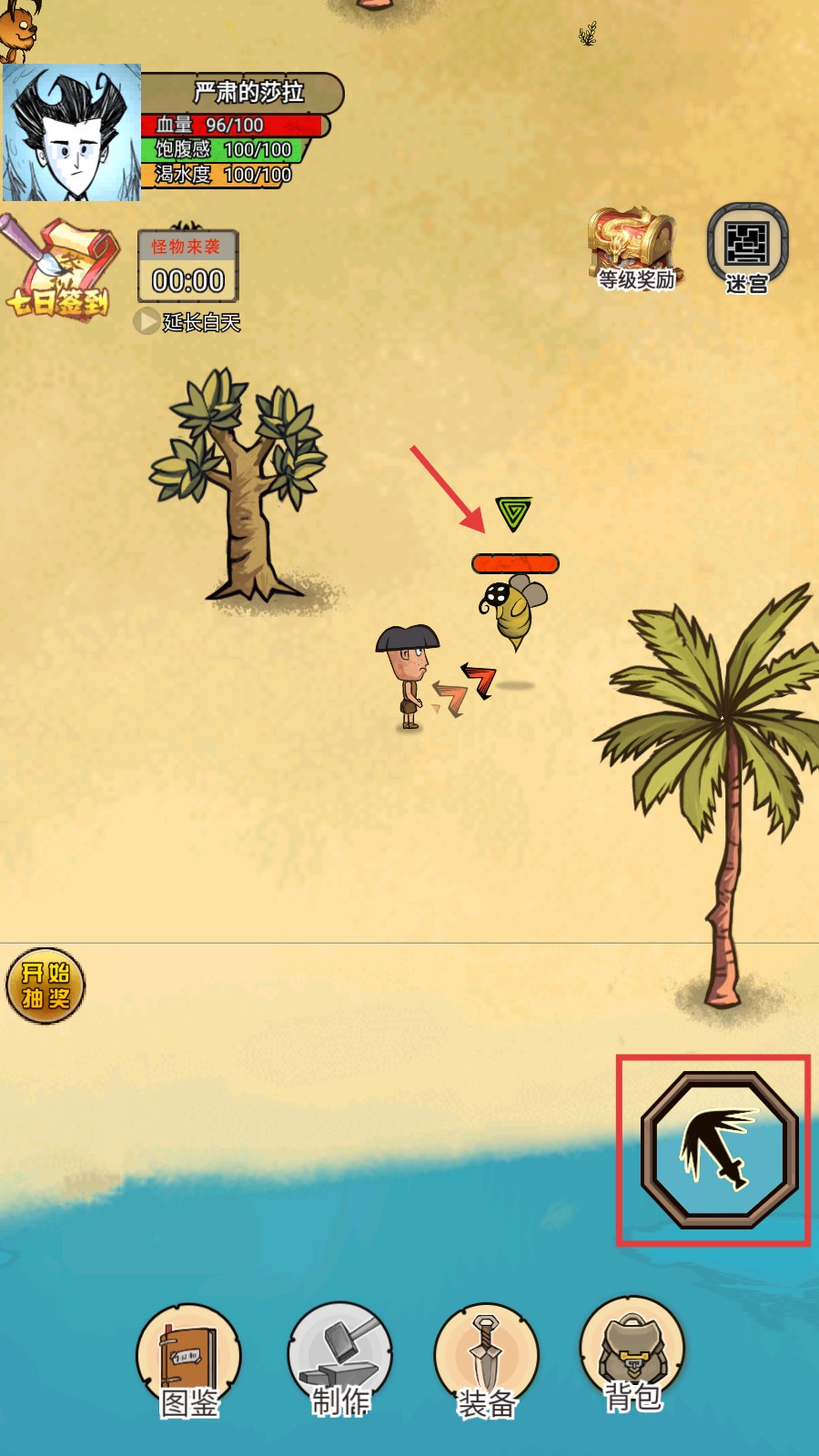 3、遇蜜蜂怪物时,点击右侧攻击按键发起进攻,留意血量,适时闪避保生存。