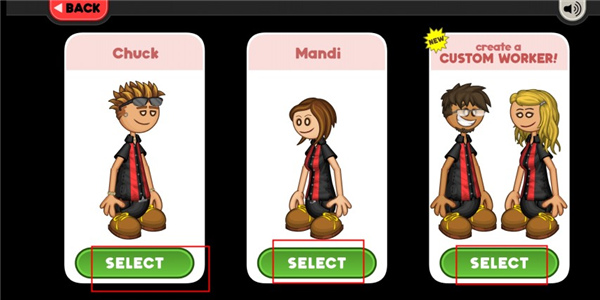 3、在游戏开始时玩家可以为自己的小店选择一个服务员,还可以自己创建一个新的角色。