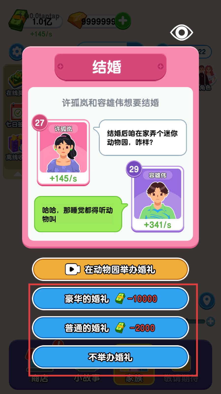 3、到了结婚环节,根据自己的选择,比如选择【普通的婚礼】,花费2000货币,推进结婚剧情。