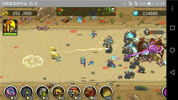 2、创造性的打破了原有塔防游戏的“固定路点”布防的传统塔防游戏的概念,以整个战场的攻防,兵阵演绎为基础,因此看起来新意十足。