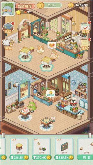1、奇妙餐厅游戏的自由度非常高。随着时间的推移,餐厅的设施也在不断完善,变得越来越先进。