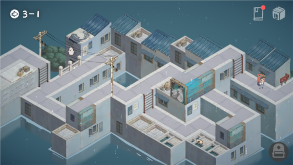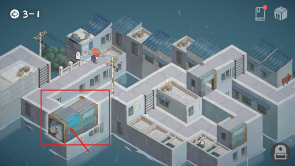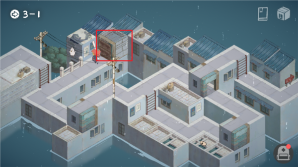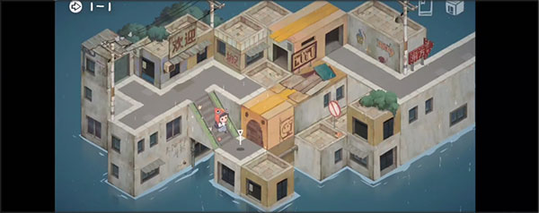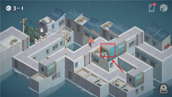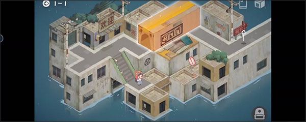 2、点击手机屏幕控制角色进行移动,发现没路可走,你可以进行移动图中的建筑,将它们放在合适的地方形成可以走的路。